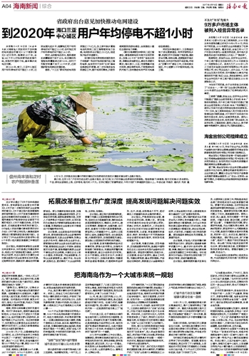 到2020年海口三亚中心城区用户年均停电不超1小时