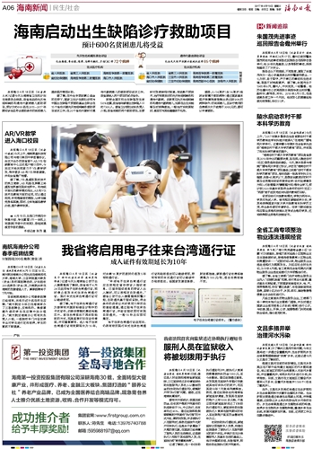 海南日报 海南新闻民生/社会 006 2017-04-191 2017年04月19日 星期三