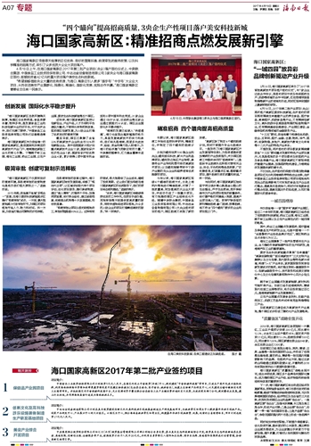 海口国家高新区2017年第二批产业签约项目