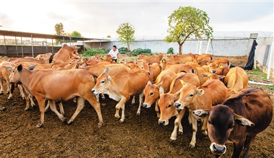 乐东黎族自治县佛罗镇丹村创办共富养牛合作社,吸收贫困户以牛入股。年终,合作社盈利且扣除成本后,将红利按比例分配给加入合作社的贫困户。图为合作社养殖基地。本报记者 武威 摄
