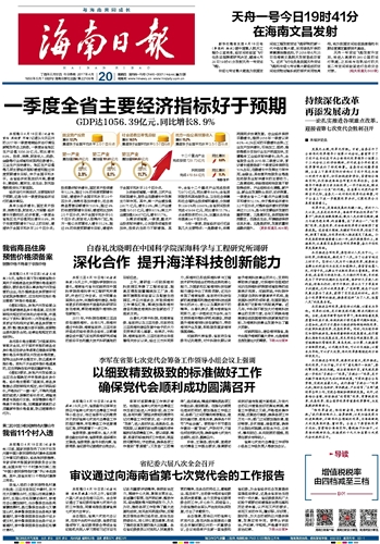 海南日报 头版 001 2017-04-201 2017年04月20日 星期四