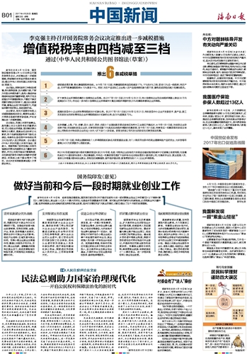 海南日报 中国新闻 013 2017-04-201 2017年04月20日 星期四