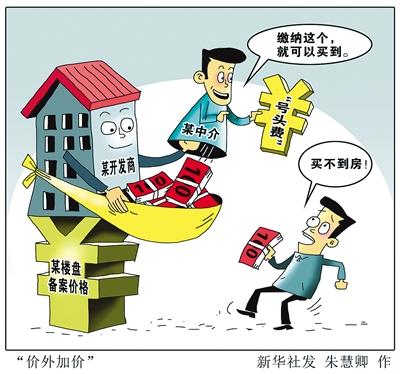 合肥市政府《关于进一步促进我市房地产市场平稳健康发展的若干意见的通知》要求,强化房地产市场联合监管,价格管理部门要及时查处“价外加价”等违反价格管理行为。记者采访时,物价部门认为,物价部门之前也接到一些“号头费”的举报,但都是属于个人行为,而且没有相关票据证明,难以处罚。