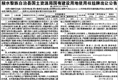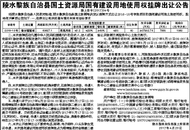 陵水黎族自治县国土资源局国有建设用地使用权挂牌出让公告