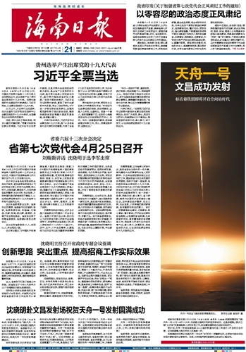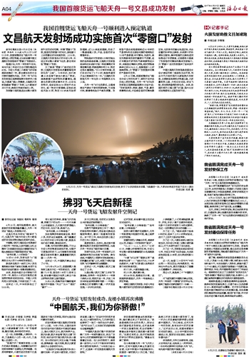 第004版 : 我国首艘货运飞船天舟一号文昌成功发射