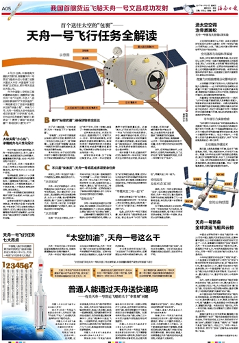 第005版 : 我国首艘货运飞船天舟一号文昌成功发射