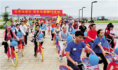 今年4月22日是第48个“世界地球日”,海口市政府和公共自行车管理部门在世纪公园举行自行车骑行活动,众多环保志愿者积极参与,倡导绿色出行,保护地球。本报记者 古月 摄