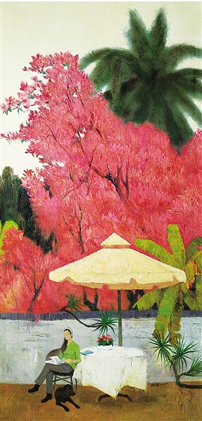正是因为海南的植物在画谱上找不到先例,才给了画家更多的艺术创作空间。作为土生土长的海南人,虽已年过花甲,画家王家儒仍坚持到海南农村写生,在他看来,自然最能激发他的创作灵感。他从小饱受海南绚丽丰富的光色淋浴,对强烈的色彩有得天独厚的感受力与敏感度,因此,王家儒的画作用色大胆且活泼,即便不画海南,画作风格中也带着明显的“海南印记”。