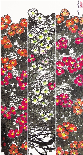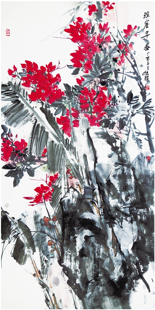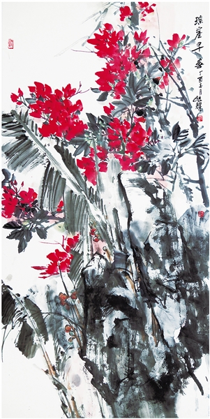 在他看来,中国画画谱中没有三角梅,在美术史上,三角梅是个新生画种,因此,对画家来说,创作三角梅既是机遇又是挑战。一方面,因为前人没有涉略,给了画家较大的创作空间;可从另外一方面来说,前人没有画过,故缺少可供参考借鉴的范本,给今人创作提供了一定的难度。