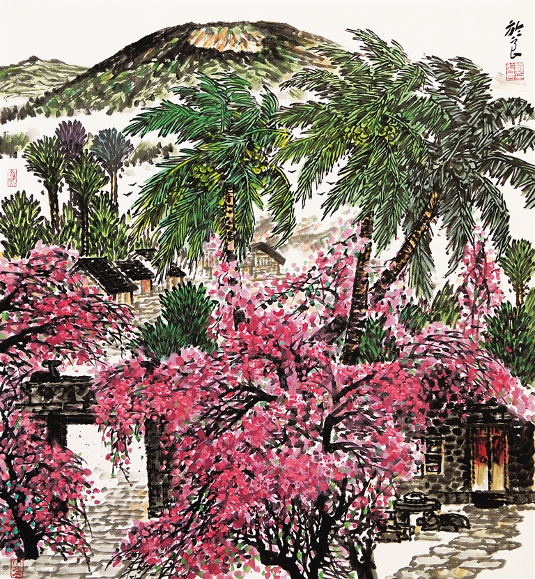 他常来海南写生,无论是海南的人文之美,还是自然之美,总能激发出他的创作冲动。他说,画家要深入基层,多走多看,最鲜活的生活体验才能带来不一样的艺术灵感。比如,虽然自家门前就有一棵大木棉树,对木棉花也不陌生,也对红木棉写生过,但是来到海南霸王岭,还是被蔚为壮观的木棉花所打动。