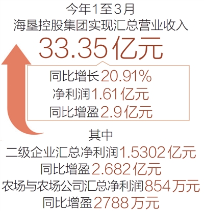 2017年是海垦控股集团确定的“扭亏保盈决战年”,第一季度经营扭亏为盈,为确保全年扭亏保盈目标开了好头。海垦控股主要负责人表示,根据省委、省政府的决策部署,海垦控股集团及其下属企业、单位一年来深入实施“八八战略”,深化改革释放红利,农场社会职能属地化明显提速,创新机制激发活力,转企改制企业的经营活力不断增强,并抓好一批重点骨干项目建设,赢得了2017年良好开局。