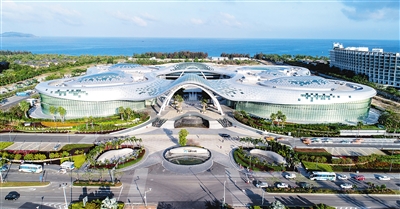 | 三亚国际免税城如同一朵娇艳的“海棠花”盛开在海棠湾蔚蓝的海岸线上,每天都有许多来自四面八方的游客来到这里购物。本报记者 王凯 摄 |