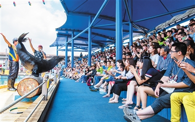 | 海南以点、线、面结合全面打造全域旅游。图为游客在陵水黎族自治县分界洲景区观看海狮表演。本报记者 武威 通讯员 童国强 摄 |