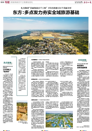 近年来,东方以供给侧结构性改革为重要抓手,推进旅游产业转型升级、扶贫攻坚等工作,大力实施“美丽海南百千工程”,打造了月大村、马龙村、南浪村、下通天村等一批美丽乡村,夯实了全域旅游发展的基础。