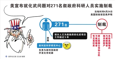 美国财政部称,这271人或有一定科学专长,或自2012年起便参与叙利亚政府的化武项目。