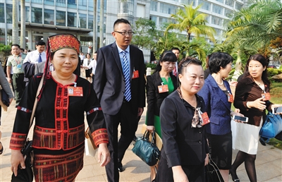 4月25日,参加省第七次党代会的代表在交流。