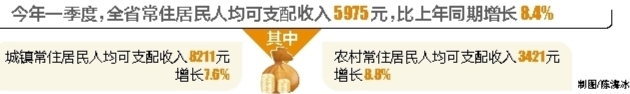 记者从国家统计局海南调查总队获悉,从一季度海南农村常住居民人均可支配收入的收入增速来看,四大项收入呈现“两稳两高”增长态势,其中工资性收入增长9.4%、经营净收入增长5.1%、财产净收入增长21.4%、转移净收入增长16.5%。从收入构成来看,工资性收入和经营净收入占可支配收入比重达82%,拉动可支配收入增长6个百分点。