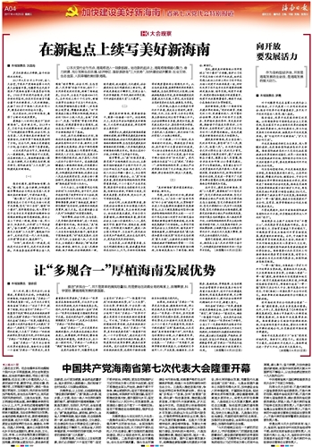 第004版 : 加快建设美好新海南 省第七次党代会特别报道
