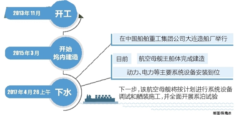 9时许,仪式在雄壮的国歌声中开始。按照国际惯例,剪彩后进行“掷瓶礼”。随着一瓶香槟酒摔碎舰艏,两舷喷射绚丽彩带,周边船舶一起鸣响汽笛,全场响起热烈掌声。航空母舰在拖曳牵引下缓缓移出船坞,停靠码头。