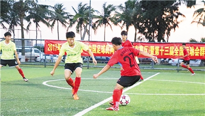 4月初,第十三届全运会笼式足球海南选拔赛落幕。海南省文体厅和海南省足球协会从优秀队伍中选拔优秀运动员组建海南代表队,参加第十三届全国运动会群众比赛笼式足球全国预赛。海口红色战车队是海南足坛的一支劲旅,该队夺得了2016年“我爱足球”中国足球民间争霸战总决赛5人制社会组冠军。这是海南建省后夺得的第一个全国业余比赛的冠军。琼中女足队是我省较早开展女足的队伍,球队近几年在国内青少年女足比赛中成绩不错。