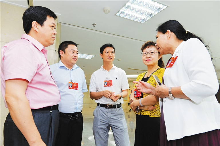 | 4月26日,来自东方、五指山的基层女代表就少数民族地区的医疗建设展开交流。本报记者 王凯 摄 |