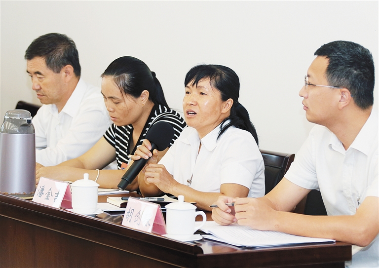 | 4月26日,来自万宁、临高的基层代表围绕脱贫攻坚如何更精准进行交流。本报记者 王凯 摄 |