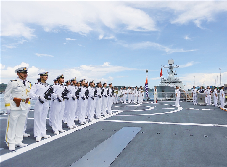 达沃市是菲律宾第三大城市,菲方在达沃港码头举行了隆重的欢迎仪式。达沃市市长萨拉·杜特尔特女士、菲海军海上系统司令部托拉尔巴少将、东棉兰老海军部队司令恩里克斯上校、中国驻菲大使赵鉴华、华人华侨和中资机构代表,以及正在菲访问的中国海军访问团成员到码头迎接。 新华社记者 许寿明 摄