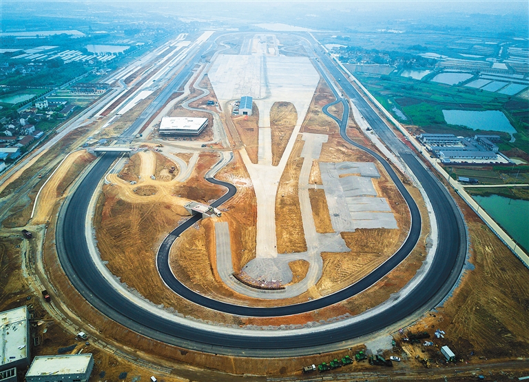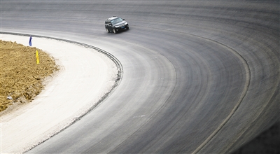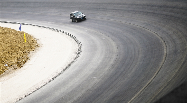 4月下旬,江苏南京福特试车场高速环道弯道段沥青摊铺完工,这座“中国造”试车场高速环道即将亮相投运。 据承建单位中铁四局介绍,该试车场高速环道总造价约4600万元,全长3036.684米,垂直高差约5米,设计最高车速160公里每小时,沥青摊铺总厚度约18厘米,预计于7月投运。 试车场是新型汽车和特殊车辆在研发阶段进行质量、性能和耐久性测试的大型专用基础设施,其中高速环道是试车场的核心工程,用于检验车辆在高速行驶下的各种状况。由于高速环道弯道段为半球形曲面,普通的平面沥青摊铺机无法实施摊铺,以往国内的试车场高速环道沥青摊铺都由外国建筑公司施工。