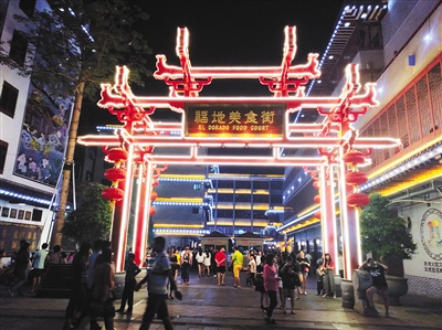 观光夜市位于琼山区府城培龙后街,A区共设有36个摊车和29个铺面。