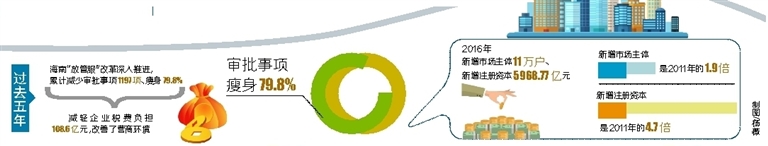 省第七次党代会报告对过去5年工作的回顾中强调,“放管服”改革深入推进,累计减少审批事项1197项、瘦身79.8%,减轻企业税费负担108.6亿元,改善了营商环境。2016年新增市场主体11万户、新增注册资本5968.77亿元,分别是2011年的1.9倍和4.7倍,发展的内生动力显著增强。