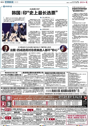 海南日报 世界新闻综合 012 2017-05-021 2017年05月02日 星期二