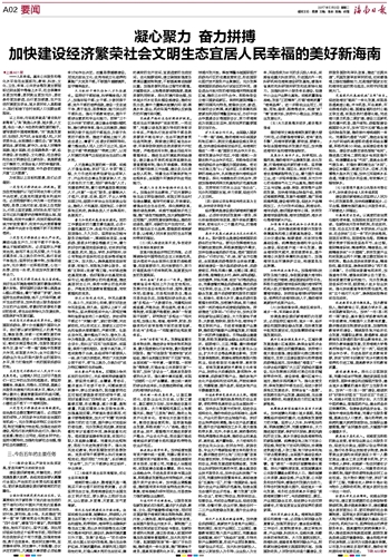 凝心聚力 奋力拼搏 加快建设经济繁荣社会文明生态宜居人民幸福的美好新海南
