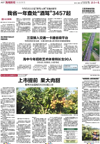 海南日报 海南新闻社会/民生 007 2017-05-021 2017年05月02日 星期二