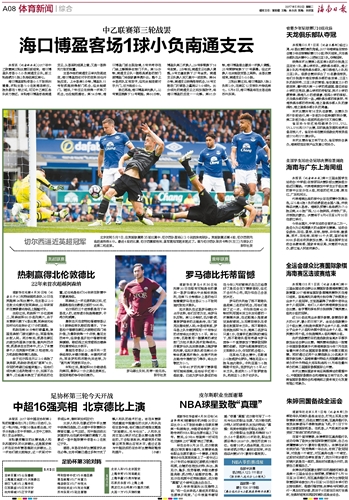 海南日报 体育新闻综合 008 2017-05-021 2017年05月02日 星期二