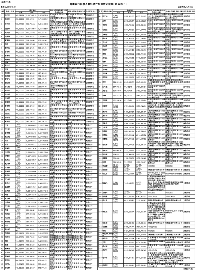 中国农业银行股份有限公司海南省分行与中国信达资产管理股份有限公司海南省分公司债权转让暨债务催收联合公告