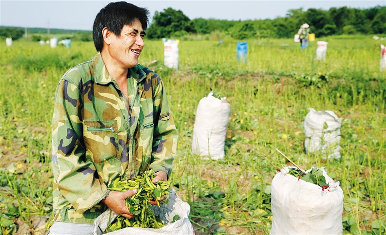 据介绍,山竹沟村以“公司+农户”的模式,种植2200亩毛豆,近百户农民参与种植,其中有24户贫困户。海南欧兰德现代农业开发有限公司以保底价2元/斤收购,农民亩产收入可达1000元-1500元。本报记者 苏晓杰 通讯员 何顺彪 摄