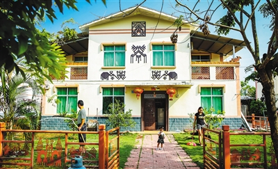 初进海南东方市大田镇报白村,以为是高端度假区。这蓝色琉璃瓦,粉白墙面,朱红门窗,独门独院的双层洋楼,竟是普通村民的家。