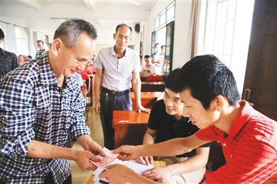 “入股分红有保障,学到技术后还能自己干,我看跟着合作社干真没错!”5月5日,吴多文在定安县新竹镇政府内举行的南华养殖专业合作社分红发放仪式上拿到了入股合作社半年的分红。