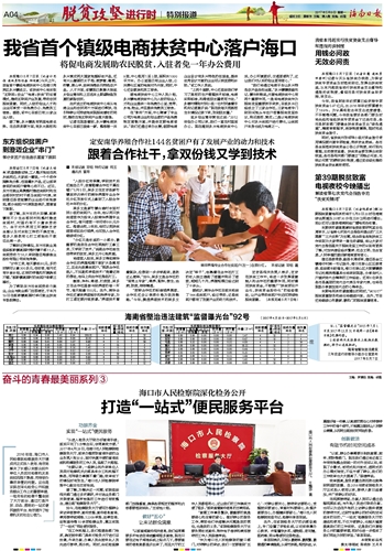 | 我省首个镇级电商扶贫中心落户海口 | |