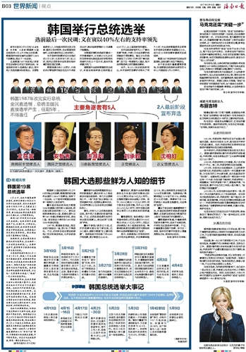 ■由于前总统朴槿惠遭弹劾下台,本届总统选举的获胜者将直接履新,这名新总统将成为韩国历史上担任“当选总统”时间最短的人。