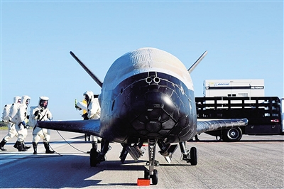 X-37B是波音公司制造的无人驾驶空天飞机,外形与航天飞机类似,但体积约为航天飞机的四分之一,部分电力源于太阳能。这种飞行器由火箭送入太空,返回时则像飞机那样在跑道上滑行降落,可重复使用。