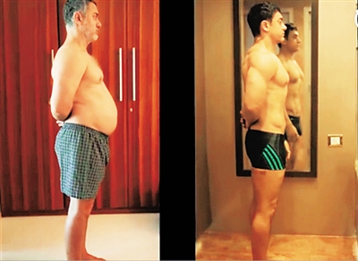 他先是拍完19岁的戏份,接着疯狂增肥,一个月时间,从体重138斤的美男子摇身变成了体重194斤、体脂含量37%的55岁大胖子。拍完中老年戏份后,阿米尔·汗又整整花了5个月时间疯狂减肥,最终又回归到体重144斤、体脂9.8%的肌肉男神,回头去拍29岁时的戏份。这样敢于吃苦,仅仅为了拍电影,真是用命在拍。