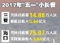 在刚刚结束的“五一”小长假里,天气晴好、气温回升,人们出游热情高涨,我省旅游市场也像日益攀升的气温一样火热,迎来旅游小高峰。2017年“五一”小长假,三亚共接待游客14.88万人次,同比增长15.76%,旅游总收入5.44亿元,同比增长17.08%,海口共接待游客75.07万人次,实现旅游收入3.84亿元,我省旅游市场供需两旺。