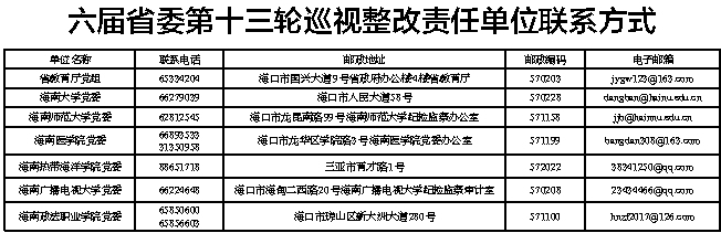 整改:切实履行党委主体责任,对涉嫌虚报、挪用中等职业学校国资助学金、学生副食品价格补贴和人才招聘有关问题进行立案审查,给予党纪政纪处分6人次,诫勉谈话3人次,并按省纪委要求做好退还有关资金和发放应发资金工作。从违纪问题中深刻吸取教训,完善《海南广播电视大学收费管理办法》,对分校财务管理进行全面自查。出台《海南广播电视大学科研项目经费管理办法》,全面清理科研经费报销不规范的问题。召开党建工作分析会,建立党委委员参加支部学习制度和总支书记例会制度,成立5个党总支和19个党支部,完善基层党组织机构建设。