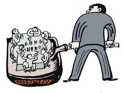 热播剧《人民的名义》里的干部“回炉班”让人拍手称快,现实中的“回炉锻造”同样让人充满期待。领导班子7人集体被免职“回炉”,可以想见这一领导班子有多糟糕,然而,在以往,不少人抱着法不责众的心理不思改进,现在,“回炉班”的举办无疑给“庸懒散”以及不作为、乱作为、懒作为现象以迎头痛击,更好地营造了“能者上、庸者下”的良好氛围。我们期待“回炉班”真正“治病健身”,取得实效。这正是: