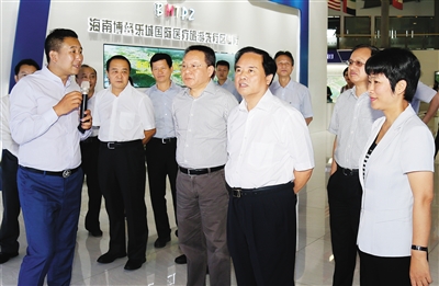 上午,刘赐贵一行首先来到博鳌乐城国际医疗旅游先行区。作为享受特殊优惠政策的开放园区,先行区目前已正式受理医疗健康项目58个,通过技术评估36个,开工27个,3个项目建成试营业。其中,博鳌一龄生命养护中心建成运营以来已接待会员7000多人次。刘赐贵充分肯定了先行区的建设成果,要求琼海市委市政府和先行区管委会加快完善基础设施配套,精心营造环境,把园区建成一个大花园,真正成为博鳌亚洲论坛的“第二乐章”和海南开放新平台。他特别叮嘱入园企业要把政策用好用足,全力推进项目建设运营,同时也要严格遵守政策监管要求。