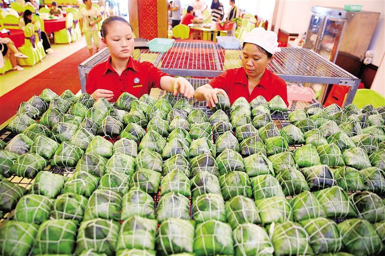 转型需要引路人。定安支持通过成立粽子协会,组织生产粽子企业,通过实地考察和学习的方式,学技术、引设备,实现了真空包装,高温消毒等规模化生产的工艺,让定安粽子“搬离”小作坊,“住进”现代化大工厂。