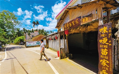 盛夏时节,苗寨里天蓝水清、绿树葱茏。今天下午,“哖嗦”苗家乐老板李家全在琼海市会山镇加脑村的村口目送一批批自驾返程的游客,这位苗家大叔脸上堆满笑容,“虽不是旅游旺季,但每周来村里的游客还是很多,甚至还有外国人,谁不说我们村子美?”