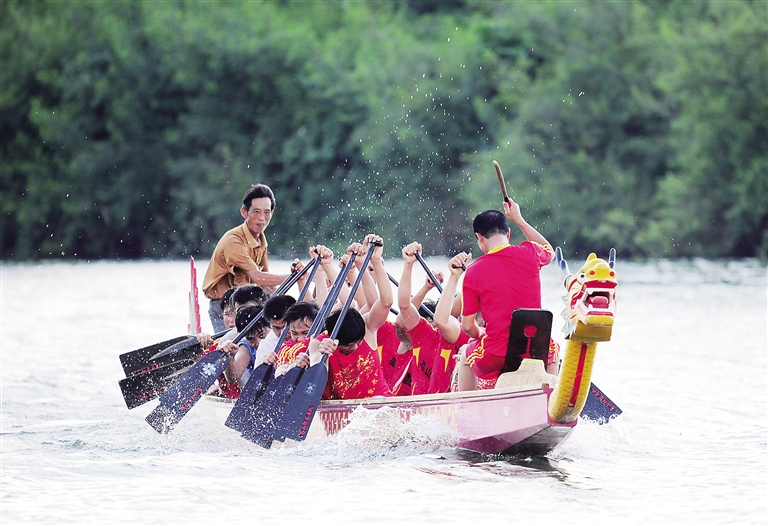 挥桨苦练 迎龙舟赛