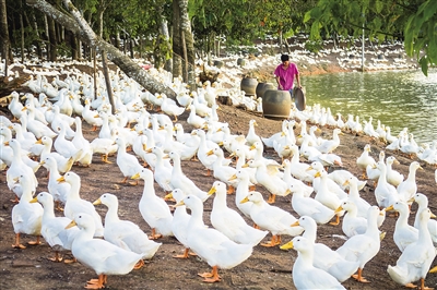 据了解,美万新村利用水库养鸭已有20多年的历史。如今,彭兴和其他几户村民共同养鸭致富,村里每年出栏10万多只白鸭。特约记者 吴文生 摄